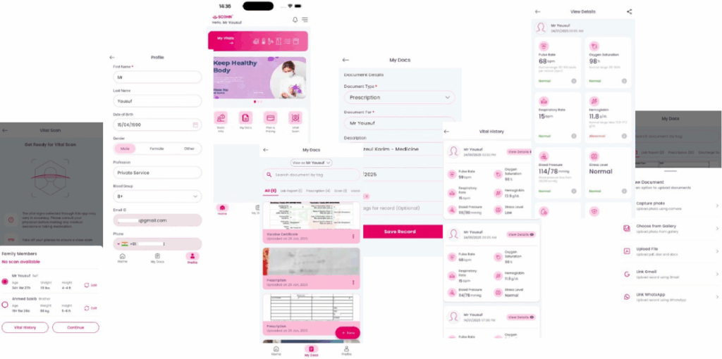 Vital Scan uses your smartphone camera and advanced AI to assess key health indicators like blood pressure, hemoglobin levels, and blood glucose risk through facial or fingertip analysis. It's 100% non-invasive and gives quick, preliminary health insights.