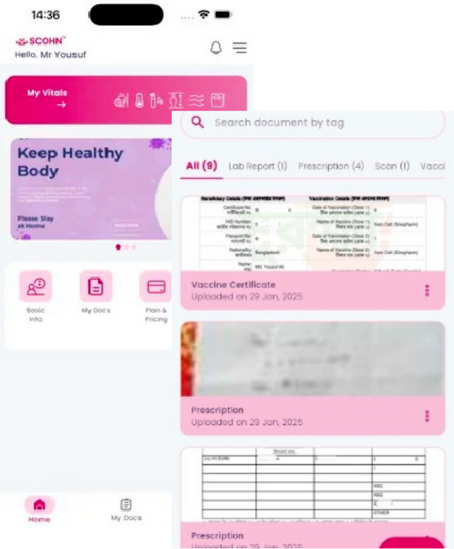 Designed for patients and caregivers, this app makes it simple to store, access, and manage your complete medical history — anytime, anywhere. From doctor visits and lab reports to prescriptions and vaccination records, everything is securely organized and just a tap away.